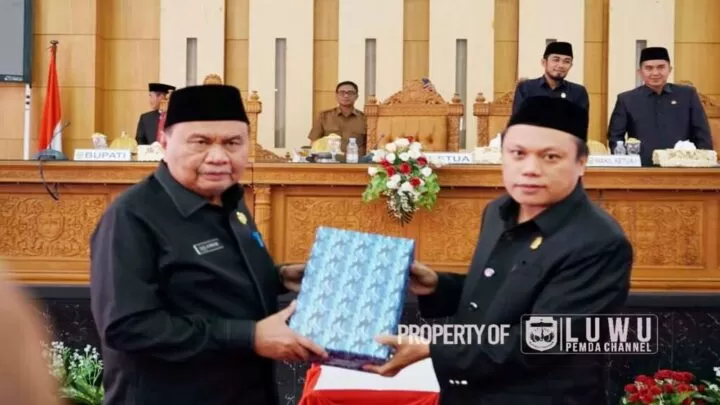 Terkini.id, Luwu - Sekretaris Daerah Kabupaten Luwu, Drs H Sulaiman, MM menyerahkan naskah Rancangan peraturan daerah (ranperda) tentang pertanggungjawaban pelaksanaan APBD Kabupaten Luwu tahun anggaran 2022 kepada Ketua DPRD Luwu, Rusli Sunali pada rapat paripurna di kantor DPRD Luwu, Kelurahan Senga Kecamatan Belopa, Senin, 26 Juni 2023.