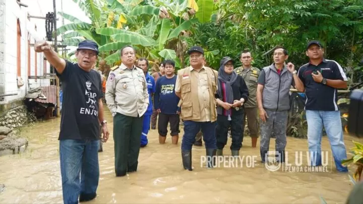 Didampingi Kepala BPBD Luwu Andi Baso Tenriesa, Kepala Dinas Sosial Luwu Hasliana Nurdin, Kepala Dinas Kesehatan Luwu dr. Rosnawary, Ketua Harian PSC 119 dr. Daud Mustakim, rombongan menyusuri lokasi banjir di Kelurahan Suli hingga ke muara Sungai Suli.